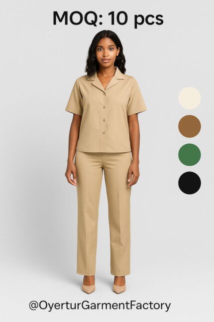 Women’s Corporate Two-Piece Shirt & Pant Set (Cotton Crepe)